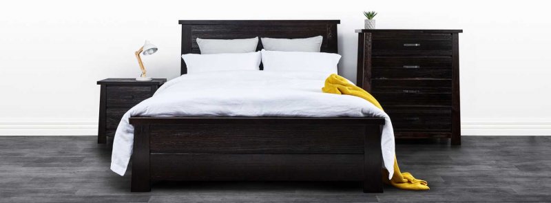 The rustic Jack super king bed frame is completed with a dark wood finish, giving a robust yet modern look, making your bedroom distinctive.